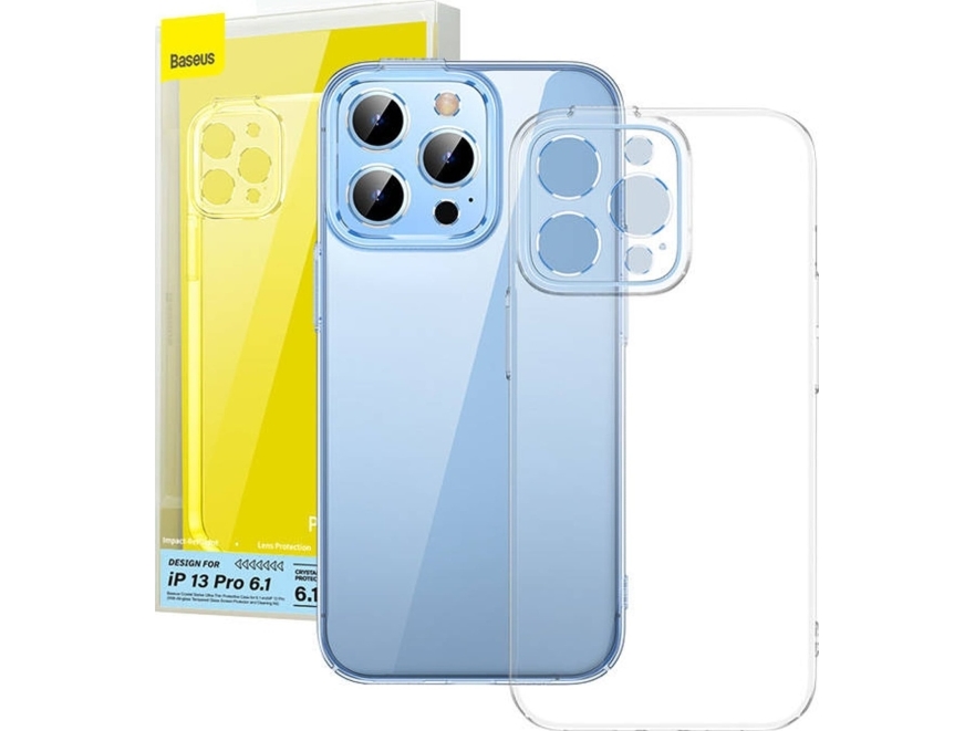 Baseus Transparent Skyddsfodral Baseus Crystal För Iphone 13 Pro + Härdat Glas + Rengöringsmedel