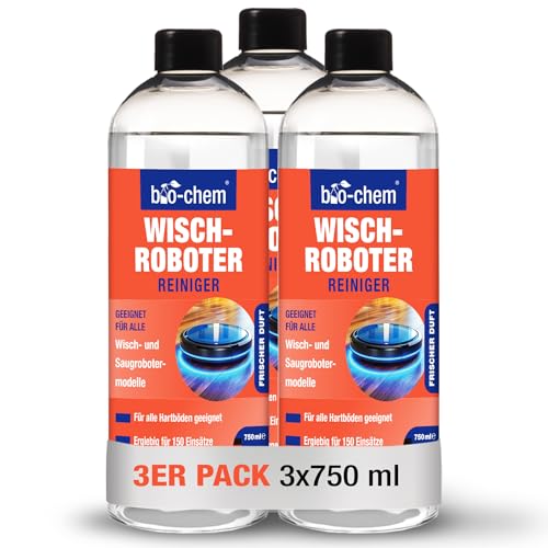 Bio-chem golvrengörare för robotmoppar - extremt högproduktivt rengöringsmedel för robotmoppar och robotdammsugare - streckfri, snabbtorkande och med tropisk doft - 3x 0.75 l inkl. doseringshjälpmedel