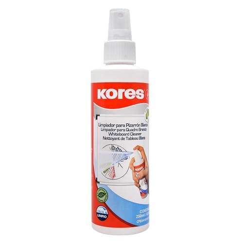 Kores - Whiteboard rengöringsspray för skola, kontor och hem, torr torkning, miljövänlig, förpackning med 1 x 250 ml