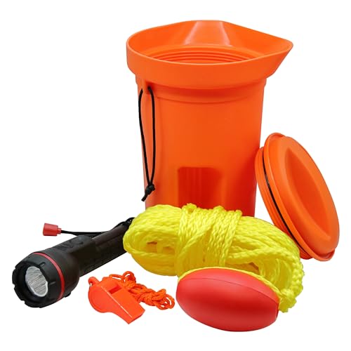 SeaSense säkerhetssats för båtbackar – torr förvaring för nödutrustning, 1,5 liter – inkluderar 50 tum rep, flytboj, visselpipa och ficklampa – perfekt för små båtar, pontonger, kajaker och