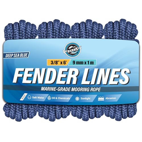 WavesRx Premium Fender Line - 4-pack | Dubbelflätade nylonbåtlinjer och rep för dockningsbojar och fendrar | Marina dockningsrep för båtar, pontoner (djuphavsblå)
