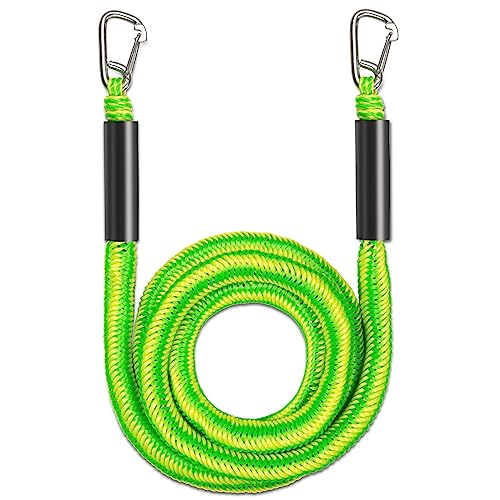 Bungee Boat Dock Line med klämma i rostfritt stål, fästlina, bungee rep, PWC dockline båttillbehör, perfekt för jetski, båtar, kajak, ponton, kanot, Wave Runner 4-pack. (Grön II)