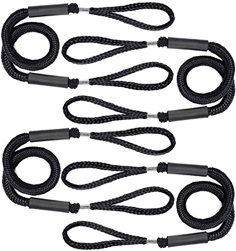 EFUTURETIME 2 x bungee dock lina, båt, fastmakare, rep, 10 cm (4 fot), fenderkoppel med öga, svart med krokar, båttillbehör för båtar, kajak, jetski, pontoon, kanot