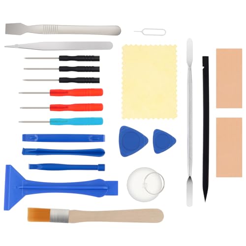 OriGlam 22-i-1 professionellt reparationssats för säker öppning, reparation av verktyg, mobiltelefon reparationsskruvmejslar sug handverktygssats med icke-slipande nylonspudgers för iPhone, smart
