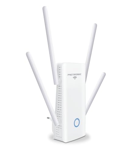 METRONIC 495438 Kraftfull Dual-Band 2,4 och 5 GHz WiFi-repeater 6 AX3000 för box alla internetoperatörer - lång räckvidd 1 000 Mbps RJ45 Ethernet-port - vit