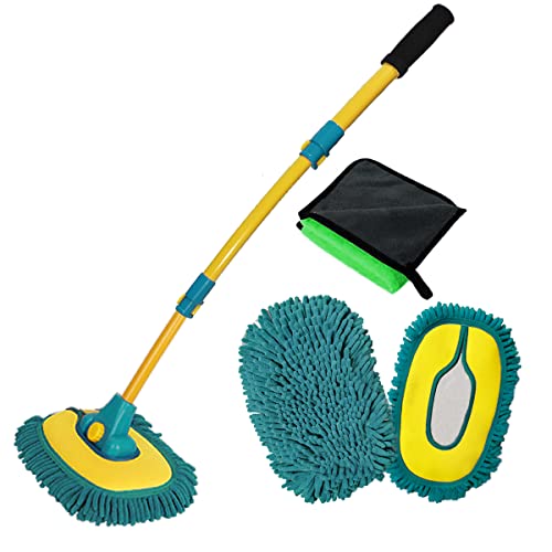 Car Wash Brush with Long Handle,Car Wash Mop Mitt with 1 Replacement Head , Extension Pole Car Brush Cleaning Kit for Cars Trucks
