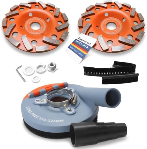FANZWORK Suction Bracket Suction Hood for Angle Grinder incl. 2 x 125 mm Diamond Grinding Head Professional Quality - Incl. Replacement Brush - 99% Universal Fit - M14 Adapter