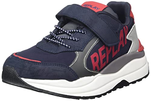 Replay Merak Jr-lace Up shoe pojkar Sneaker, marinblå röd, 29 EU