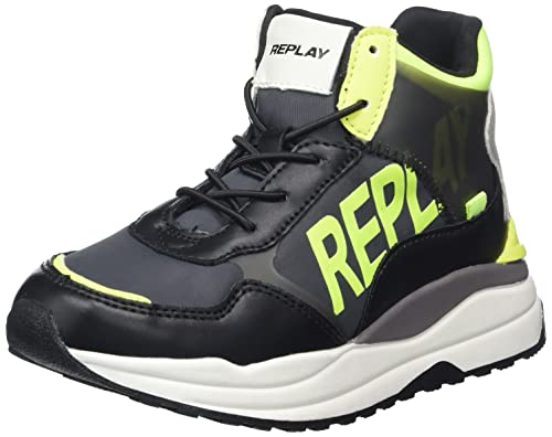 Replay Merak Jr-lace Up shoe pojkar Sneaker, svart lime grön, 31 EU