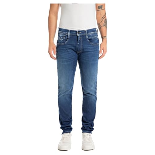 Replay Herren Jeans Anbass Slim-Fit Hyperflex White Shades mit Stretch, Blau (Medium Blue 009), 30W / 34L