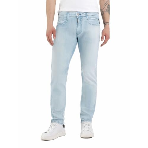 Replay Herren Jeans Anbass Slim-Fit Hyperflex White Shades mit Stretch, Blau (Light Blue 010), 28W / 34L