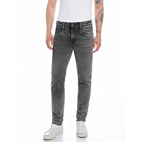 Replay Herrjeans Anbass smal passform Hyperflex vita nyanser med stretch, Medium Grey 096, 27W / 32L