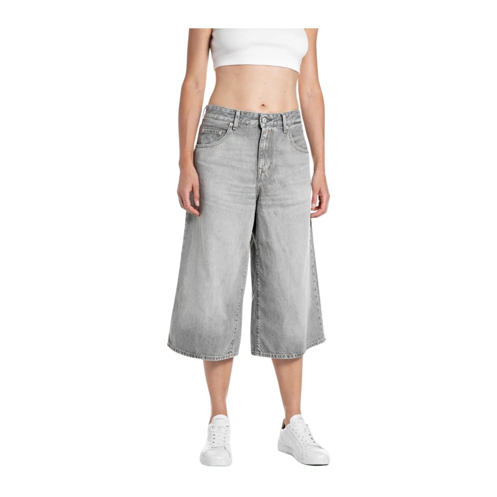 Replay, Jeans , Dam, W26, Bomull, Cropped Jeans med vida ben