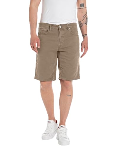 Replay Herr rak passform jeans shorts grover, 725 Jordnötter, 30W