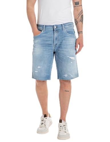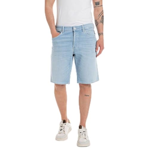 Replay Herr rak passform jeans shorts grover, 010 ljusblå, 31W