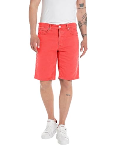 Replay Herr rak passform jeans shorts grover, 064 Pale Red, 34W