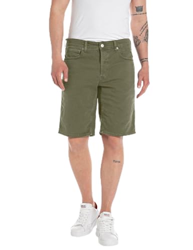 Replay Herr rak passform jeans shorts grover, 833 Light Military, 30W