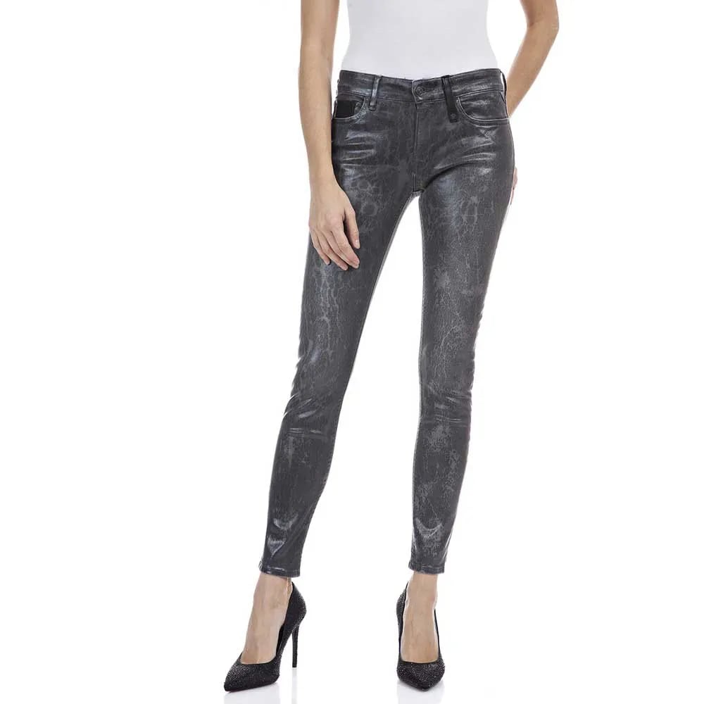 Replay Damer New Luz Powerstretch denim jeans, 099 Svart Delavè, 30W x 28L