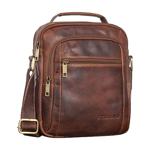 STILORD 'Lucky' läder liten axelväska herr läder reporter väska crossbody vintage äkta läder handväska, Prestige – brun, S