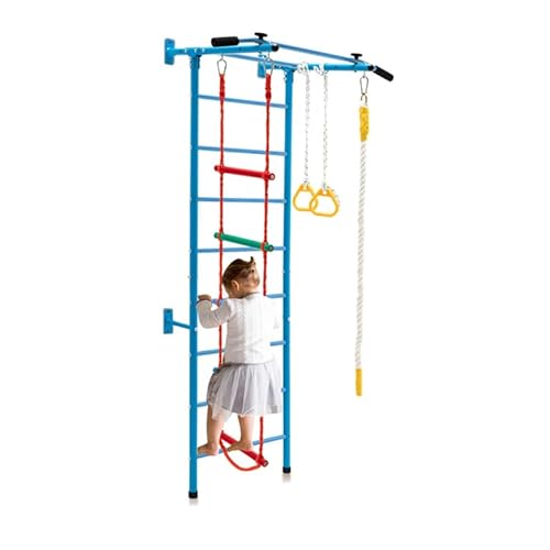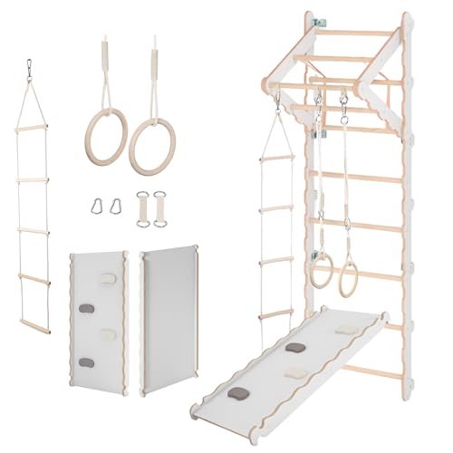 Ribbstol barnrum, gym vägg barn, småbarn | Klätterställning inomhus, gymnastikvägg av naturligt trä | Gymnastikringar barn med repstege, gunga | 100 % ECO | Tillverkad i EU ..