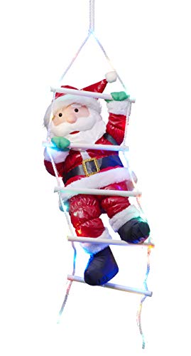Bonetti jultomte på repstege, stegen är upplyst med 30 färgglada lysdioder, klättrande jultomte för inomhus- och utomhusbruk (traditionell)