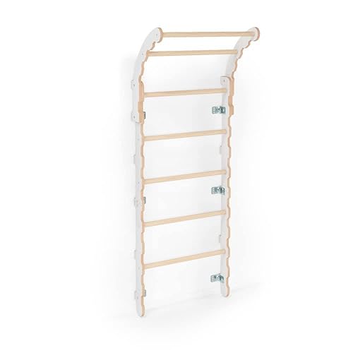 MAMOI® Ribbstol, gym vägg, klätterställning inomhus | gymnastikvägg av naturligt trä | gymnastikringar med repstege, gunga | 100% ECO | tillverkad i EU