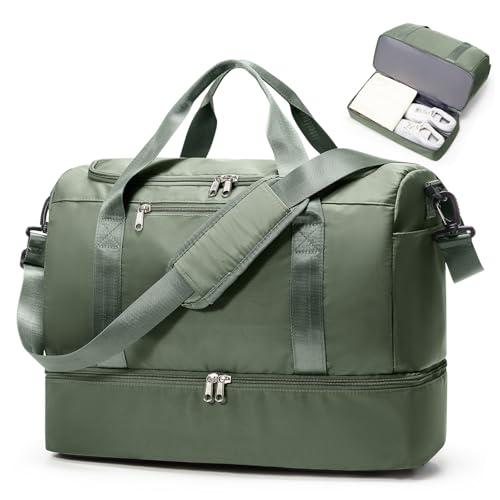 Resväska dam sportväska Ryanair handbagage väska weekender bag simväska vattentät resa duffle bag träningsväska fitness väska kvinnor för resor gym, D01 armégrön, New Ryanair/Wizz 40x30x20(24L)