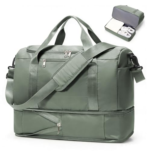 Resväska dam sportväska Ryanair handbagage väska weekender bag simväska vattentät resa duffle bag träningsväska fitness väska kvinnor för resor gym, D01 armégrön, Easyjet 45x36x20(32L)