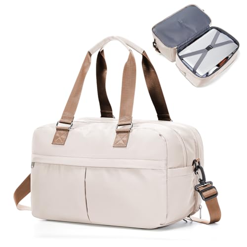 Resväska dam sportväska Ryanair handbagage väska weekender bag simväska vattentät resa duffle bag träningsväska fitness väska kvinnor för resor gym, D03-beige brun, Easyjet 45x36x20(32L)