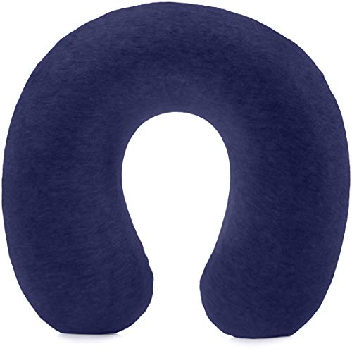 Amazon Basics Rese-nackkudde i minnesskum med avtagbart överdrag och elastisk bärrem, marinblå, halvcirkelformad