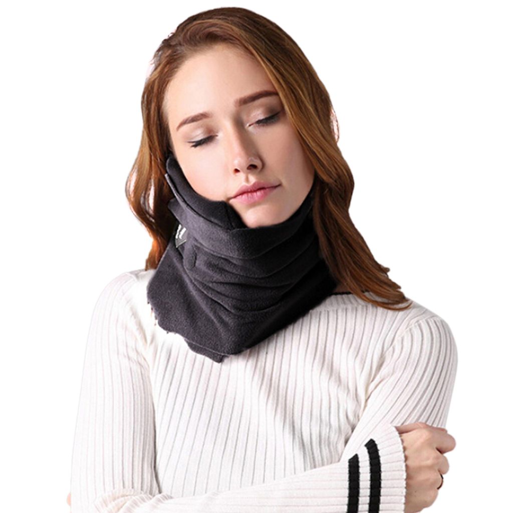 Proglobe Resekudde set med 100% Pure Memory Foam, Nackkudde för sömn, bil och flygresor, Rese-kit med 3D-konturerad ögonmask och lyxig meshväska (grå)