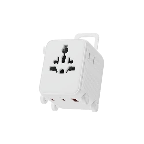 Universell reseadapter – kompatibel med över 150 länder – 2 USB-C-portar, 1 USB-A-snabbladdningsport – US/UK/EU/CA/JP/CH/AUS-uttag – Xoopar Luggie vit
