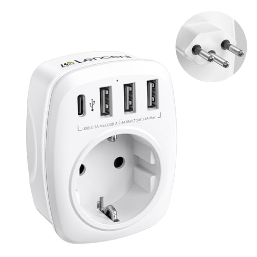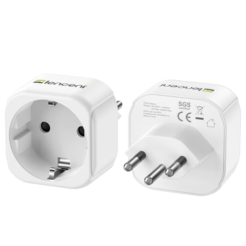 LENCENT 2 st Reseadapter Sverige/EU till Italien Laddare, Typ L Laddningsadapter för Dator, Mobiltelefon Travel Adapter Uttag, Socket Strömadapter för Italien, Chile, Maldiverna, Uruguay, Syrien, Vit