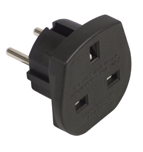 Svart 10 A reseadapter (UK på europeisk Schuko)