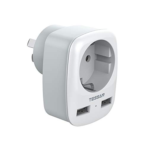 TESSAN Australien Reseadapter med 2 USB (2.4A), 3 i 1 Reseadapter Universal, 1 AC Uttag och 2 USB portar Australien Reseadapter, Universal Adapter för Nya Zeeland Argentina Väggladdare etc. Grå