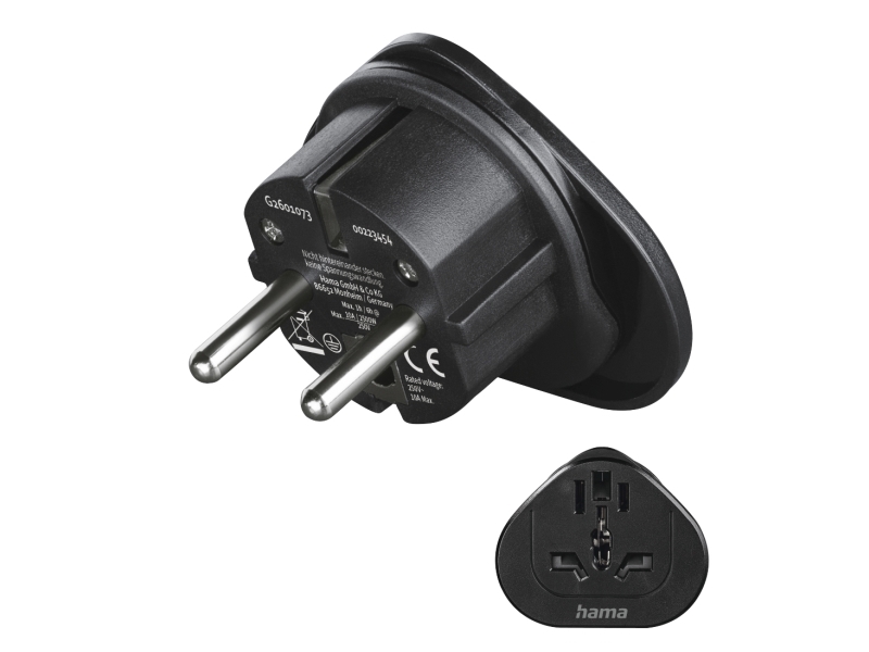 Hama Reseadapter Typ E Och F, 3-Polig, Universal, Världen Till Europa, Svart (00223454)