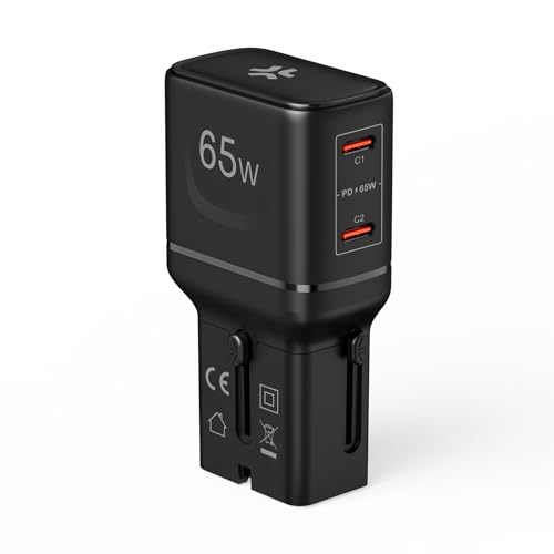 LENCENT 65W Snabb Laddning Universal Reseadapter över Hela Världen, GaN III Internationell Travel Adapter med 2 PD3.0 Typ C+1 QC USB A, Socket Adapter Worldwide för DE USA UK AUS, Typ C/G/A/I, Svart
