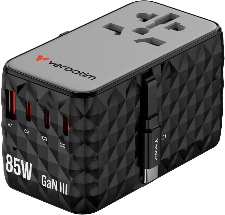 Verbatim Reseadapter GaN Universal 85W 5 portar med indragbar USB-C kabel