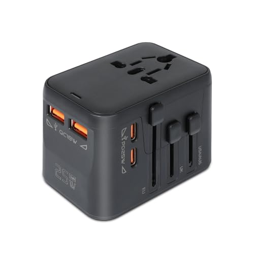 LENCENT 65W Snabb Laddning Universal Reseadapter över Hela världen, GaN III Internationell Travel Adapter med 3 PD Typ C+1 QC USB A, Socket Adapter Worldwide för DE USA UK AUS CN, Typ C/G/A/I, Svart