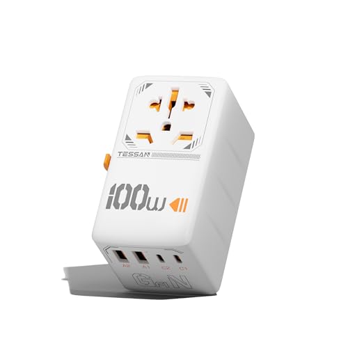 TESSAN 100W GaN Reseadapter över Hela Världen, Snabbladdning USB C Adapter, Resekontaktadapter över Hela Världen med 2 USB C, 2 USB A, Reseadapter för EU USA UK Italien Japan Thailand Australien