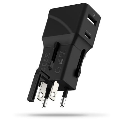 OVERMUST Travel Wall Charger - Universal reseadapter med USB-C- och USB-A-uttag, perfekt reseadapter, kompatibel med uttag i 200 länder: USA, EU, Storbritannien, AU, effekt upp till 20W