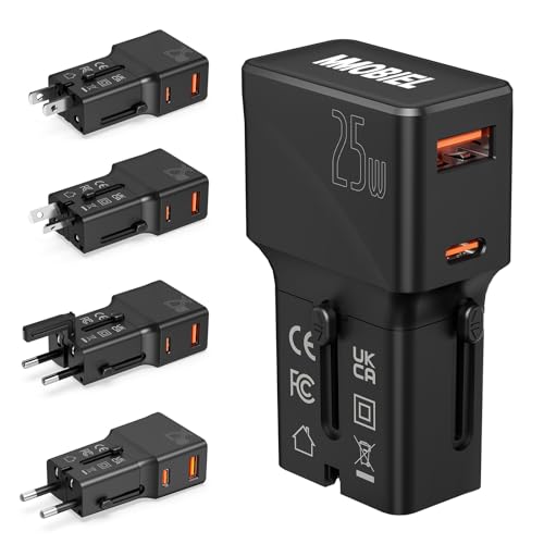 MMOBIEL Universell Reseadapter 25W - Allt-i-Ett Världsomspännande Reseadapter - Internationell Uttag Adapter med USB-C 25W och USB-A 18W Laddningsportar för USA, UK, EU, AUS, CN, JP - Fickformat