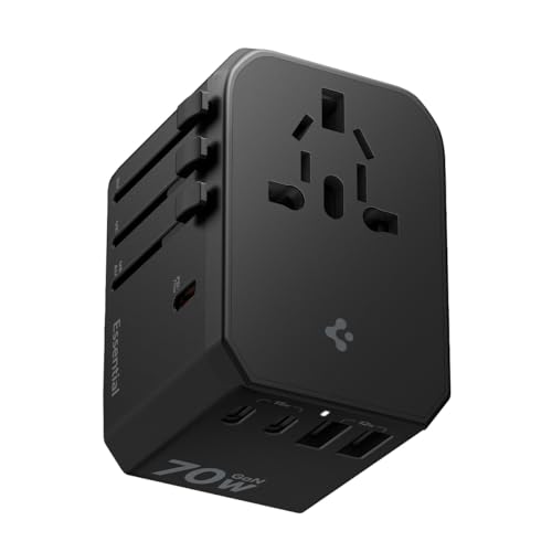 Spigen ArcStation universell reseadapter 70 W, [5-port och PD] Universal 3 USB C och 2 USB A, internationellt resetillbehör för engelska/EU/USA/Australien/Japan - svart