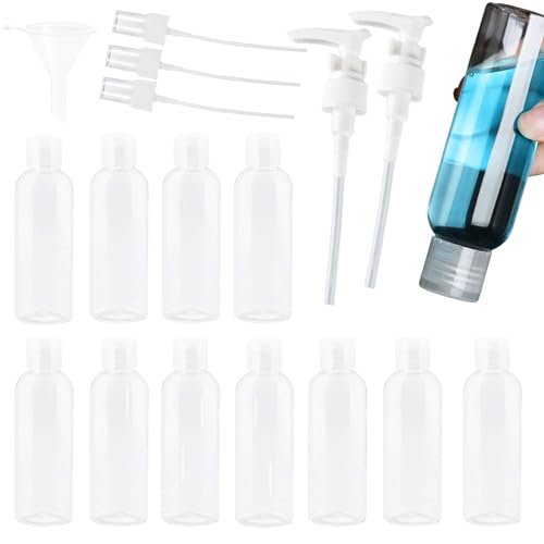 12 pack Reseflaskor, 100 ml tomma plastflaskor, kosmetikflaskor med 2 munstycken och 2 små trattar, kosmetikresebehållare, för flygresor, affärsresor, schampo, lotion duschgel