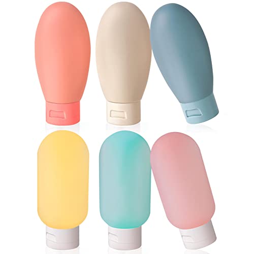 GWAWG 6-pack set med 60 ml reseflaskor, bärbart set med resebehållare, läckagesäker, påfyllningsbar, klämbar för schampo, balsam och toalettartiklar