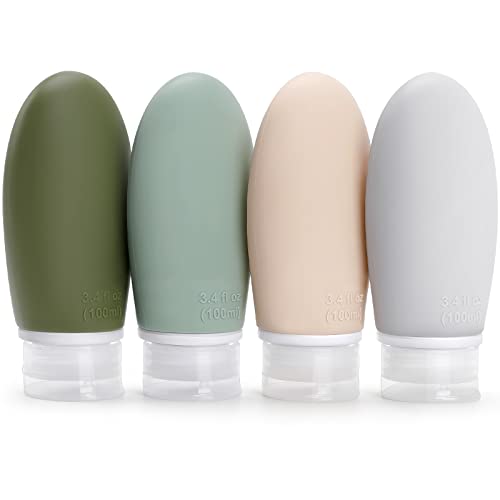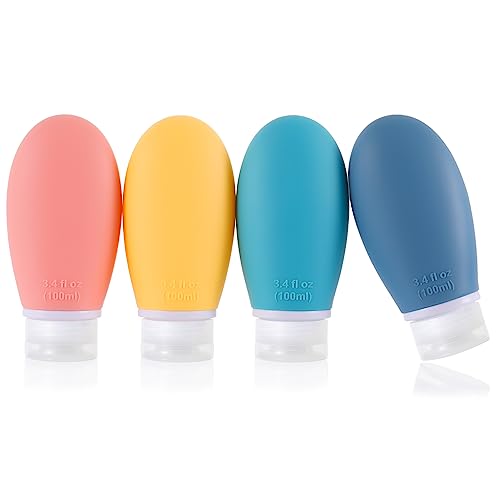 Silikon reseflaskor, 4-pack 100 ml läckagesäker kläm-påfyllningsbar bärbar tom resestorlek flaskor tillbehör behållare för toalettartiklar, schampo, balsam lotion, BPA-fri och TSA-godkänd