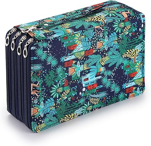 200-spår konsttillbehörsorganiserare med dragkedja – stor kapacitet fodral för 200+ pennor, markörer och färgpennor, bärbar reseförvaring för konstnärer och studenter (djungel), BLÅ, Djungel