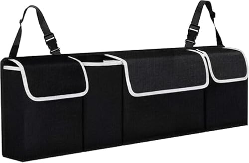 TANNESS Sätesorganiserare för bilbagageutrymme med justerbara remmar – förvaringstillbehör organisatörer – ryggskydd för sätet, medium stor interiör, reseförvaring, hopfällbart lastnät för bilbaksäte,