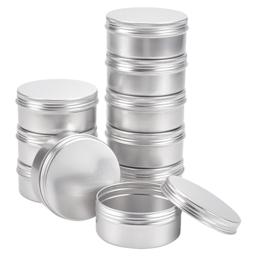 BENECREAT 10 st 150 ml aluminiumburkar, runda aluminiumburkar, kosmetiska behållare med skruvlock för gör-det-själv-hantverk, ljus, reseförvaring, platina