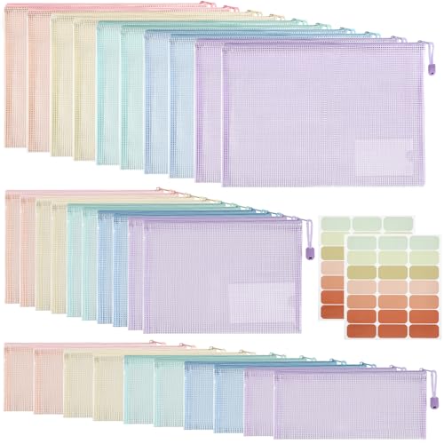 Havnidy plastplånböcker set, 30 st fickor med dragkedja, A4 + A5 + A6 storlek dragkedja väskor nät dokumentplånbok för skola, kontor, hem och reseförvaring